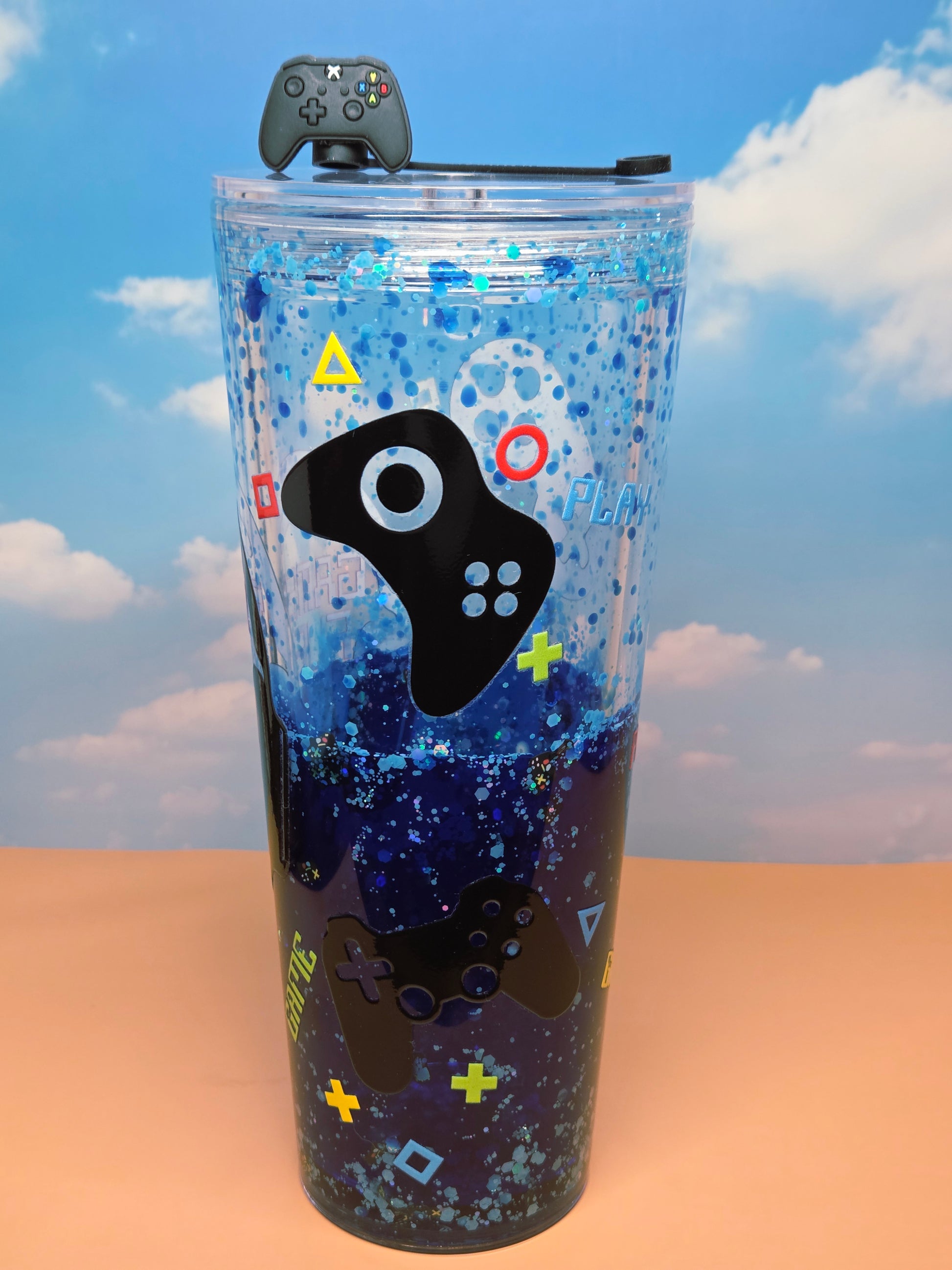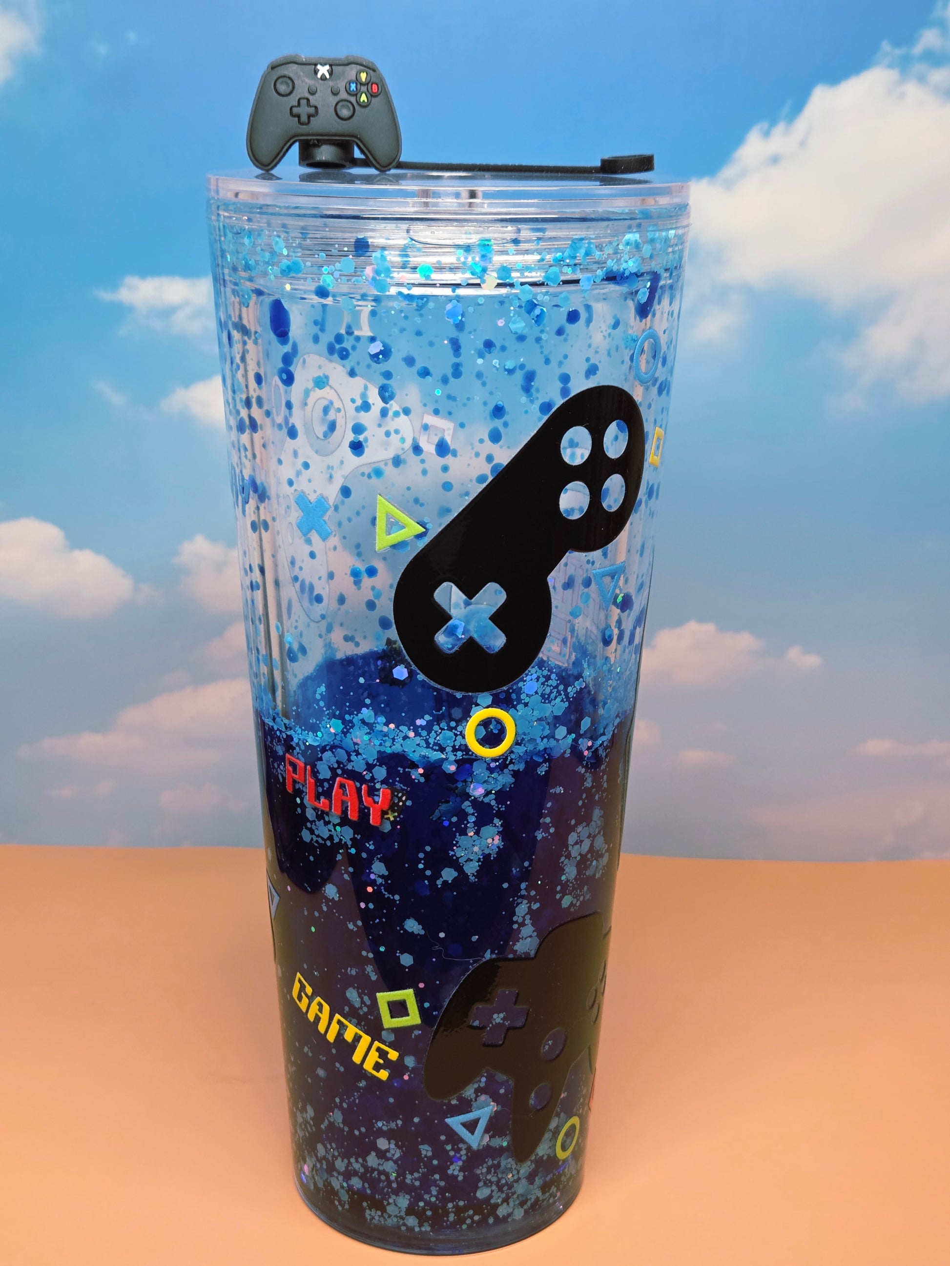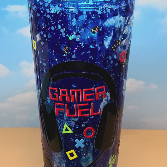 Level up your hydration game with the Gamer Fuel 24oz Snowglobe Tumbler. This eye-catching tumbler features a mesmerizing blue lava flow effect suspended in a crystal-clear snowglobe design that's sure to turn heads at your gaming setup or on the go. Whether you're grinding ranked matches, streaming to your fans, or just need a conversation-starting drinkware piece, the Gamer Fuel tumbler delivers style and function in one epic package