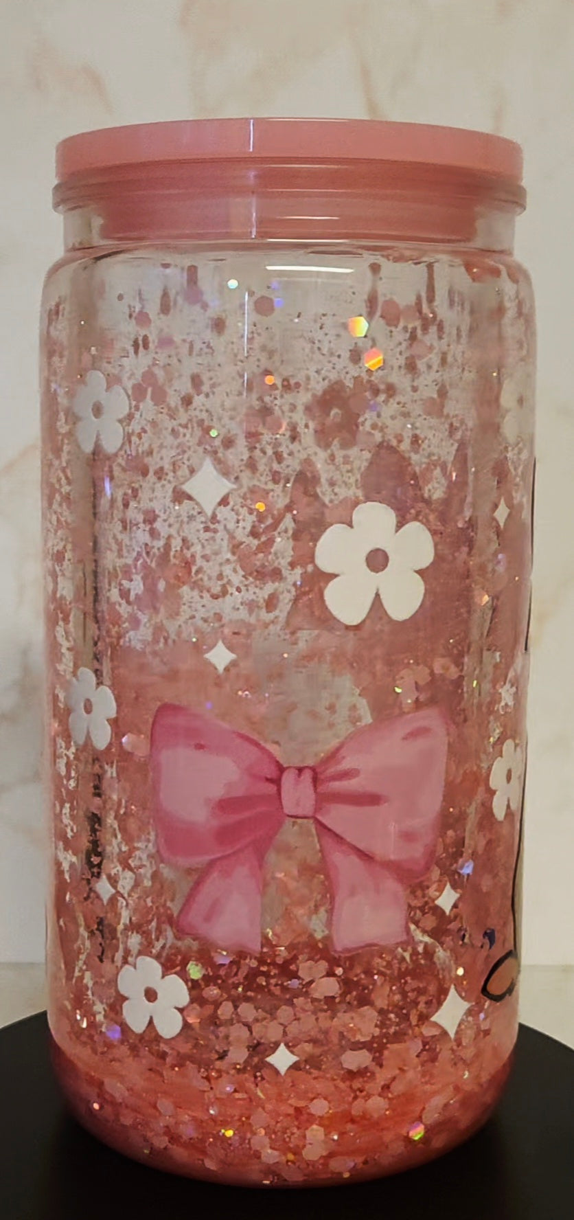 Meet your new favorite drinkware companion! This stunning Highland Cow with Pink Bow lava flow glitter snowglobe tumbler features an adorable Highland cow adorned with a sweet pink bow, surrounded by a mesmerizing lava flow glitter effect that cascades and swirls beautifully. This 16oz tumbler perfectly blends rustic farmhouse charm with feminine flair, making it ideal for Highland cow enthusiasts who love a touch of pretty with their pastoral style. Complete with a coordinating lid and straw, it's the ultimate drinkware for cow lovers everywhere.