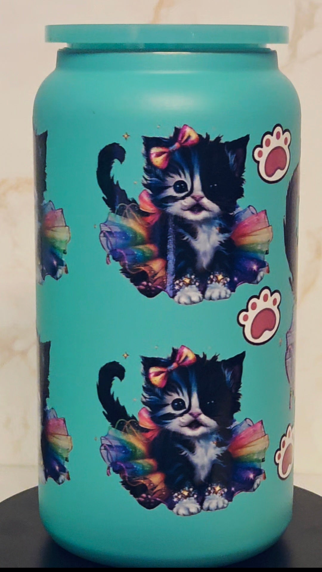 Calling all cat lovers! This adorable Pretty Kitty stainless steel tumbler is the purr-fect way to show off your feline fandom. Featuring a charming kitty design that's equal parts cute and stylish, this 16oz tumbler is made for those who know that life is simply better with cats. Complete with a coordinating lid and straw, it's ideal for coffee runs, water breaks, or any beverage that deserves a touch of whisker-worthy charm.