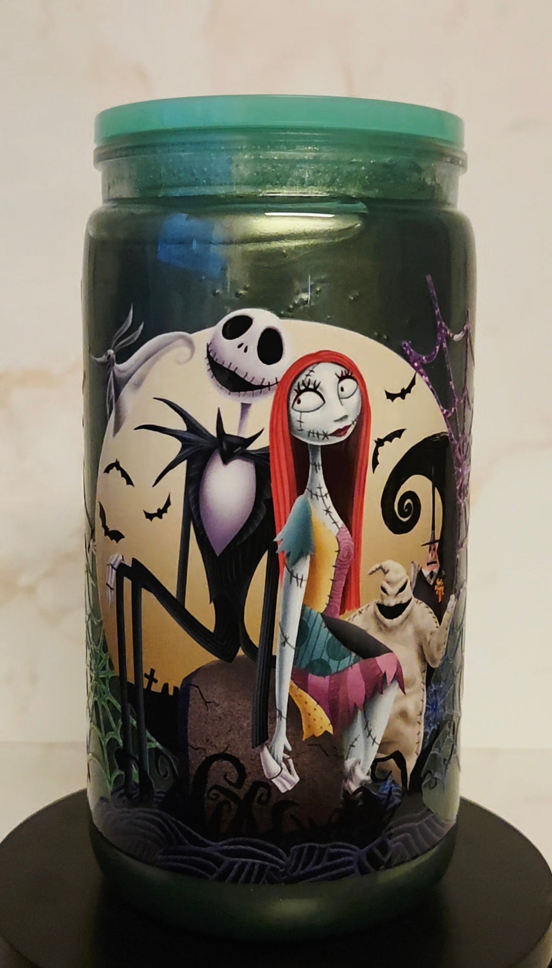 Embrace the magic of Halloween Town with this enchanting Nightmare Before Christmas snowglobe tumbler! Perfect for fans of Tim Burton's beloved classic, this 16oz tumbler captures the whimsical, spooky spirit of Jack Skellington and friends. Featuring a mesmerizing snowglobe design with swirling glitter, plus a matching lid, straw, and character topper, this tumbler is a must-have for spooky season enthusiasts and year-round Halloween lovers.